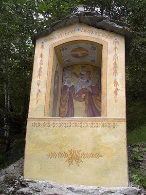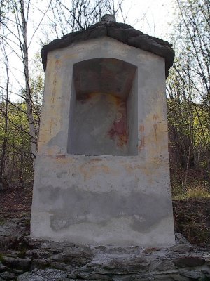 L'edicola si pone in un contesto rurale e rappresenta una delle tappe di preghiera lungo un percorso montano in provincia di Cuneo. Risalente alla fine del XIX sec, di mano popolare, a causa di umidita' e infiltrazioni d'acqua, il cattivo stato conservativo ha pregiudicato i colori e i disegni originali recuperati a partire da un rifacimento totale degli intonaci deteriorati.