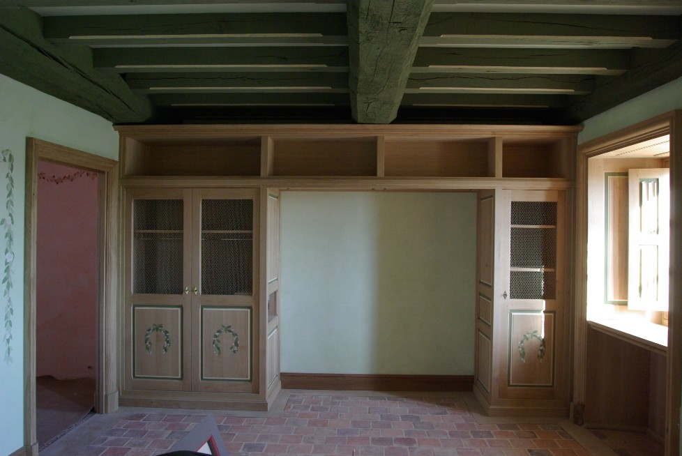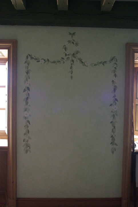 Decorazione su mobili riprendente la ghirlanda della decorazione parietale.